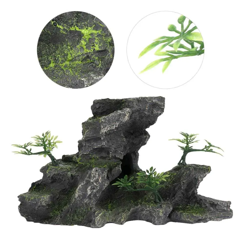 Adorno de piedra de montaña para acuario: hecho de resina y material de alta calidad, seguro, contaminante, completamente seguro para animales acuáticos, decoraciones de tanques