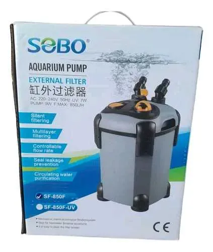 Filtro Botellon Externo Sobo Ek Sf850 F es la solución ideal para mantener el agua de tu acuario en condiciones óptimas. Con una capacidad máxima de filtración de 850 litros y un caudal de 850 litros por hora, este filtro garantiza un ambiente saludable para tus peces y plantas acuáticas.